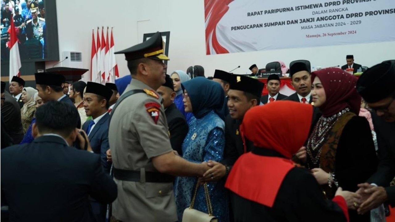 Mamuju – Kepala Kepolisian Daerah (Kapolda) Sulawesi Barat, Irjen Pol Adang Ginanjar, menghadiri acara pelantikan 45 anggota Dewan Perwakilan Rakyat Daerah (DPRD) Provinsi Sulawesi Barat masa bakti 2024-2029.